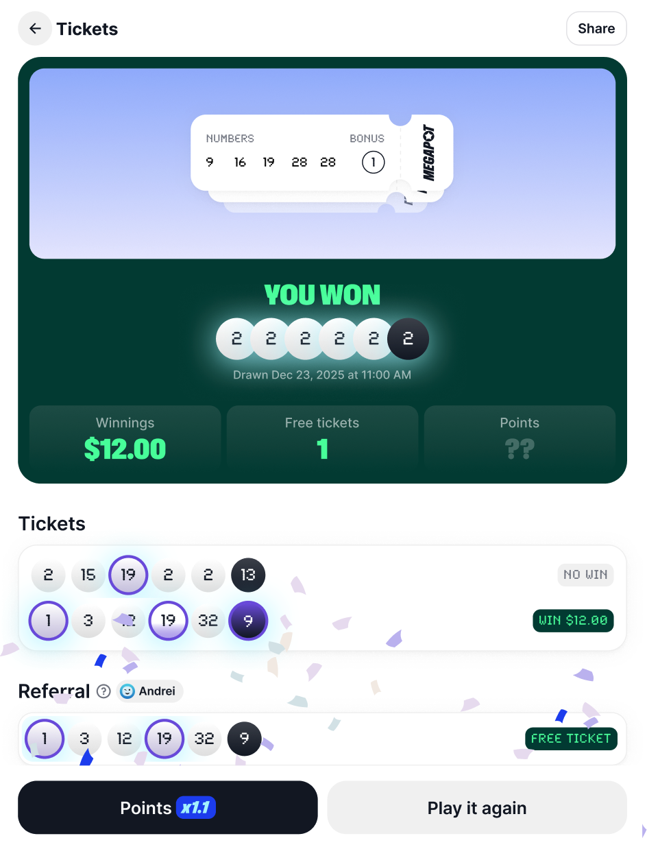 2. **View matches** — Your tickets show how many numbers matched